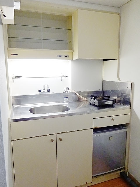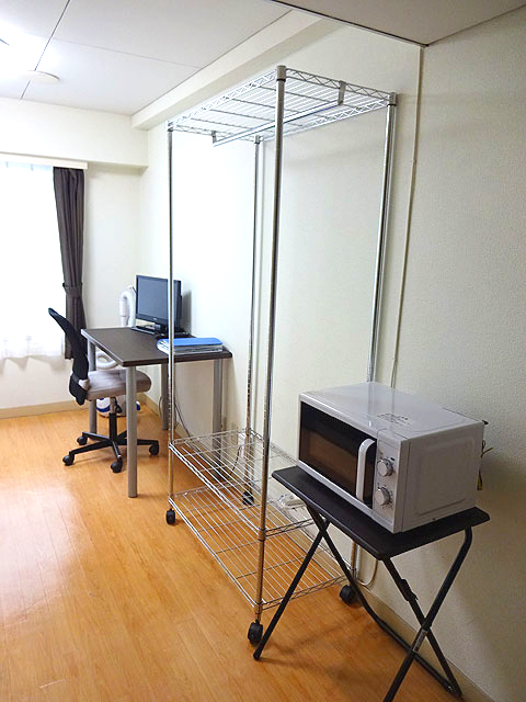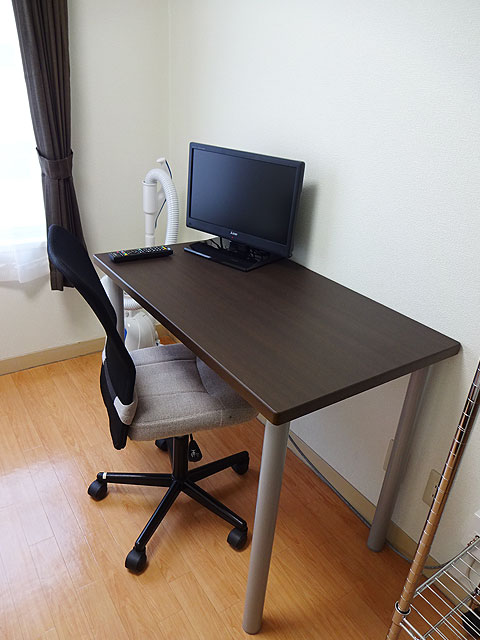 | 玄関から見た室内 | 机、イス、テレビ | キッチン | ユニットバス |